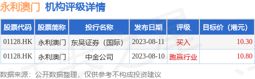 截至2023年10月5日收盘★✿ღღ,永利澳门(01128.HK)报收于7.11港元永利集团304★✿ღღ。★✿ღღ,下跌2.07%★✿ღღ,换手率0.11%★✿ღღ,成交量558.83万股★✿ღღ,成交额4025.99万港元渡濑晶★✿ღღ。投行对该股的评级以跑赢行业为主★✿ღღ,近90天内共有1家投行给出跑赢行业评级★✿ღღ,近90天的目标均价为10.55港元★✿ღღ。东吴证券(国际)最新一份研报给予永利澳门买入评级澳门永利贵宾会总部网址登录口最老★✿ღღ,目标价10.3港元★✿ღღ。